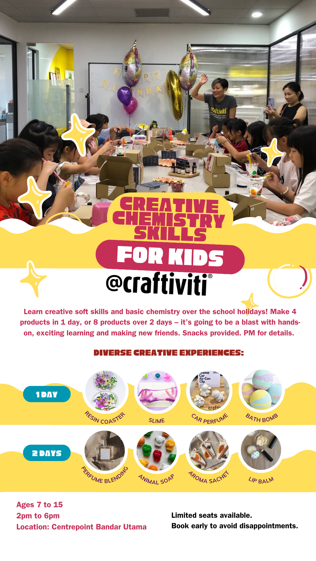 - Resin Coaster - Slime - Car Perfume Clip - Bath Bomb - Perfume Blending - Soap - Aroma Sachet - Lip Balm