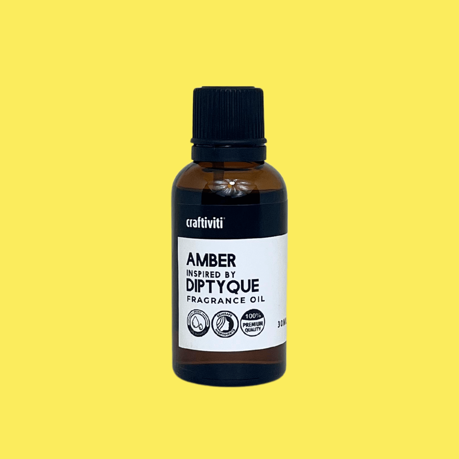 Craftiviti's Amber Inspired By Diptyque Fragrance Oil is concentrated and of synthetic origins. Ideal for candles, soaps making, wax melts, wax sachets, diffusers, body scrubs and more.