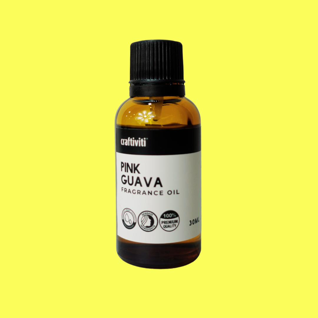 Pink Guava Fragrance Oil is concentrated & of synthetic origins. Ideal for candles, soaps making, wax melts, wax sachets, diffusers, body scrubs & more.