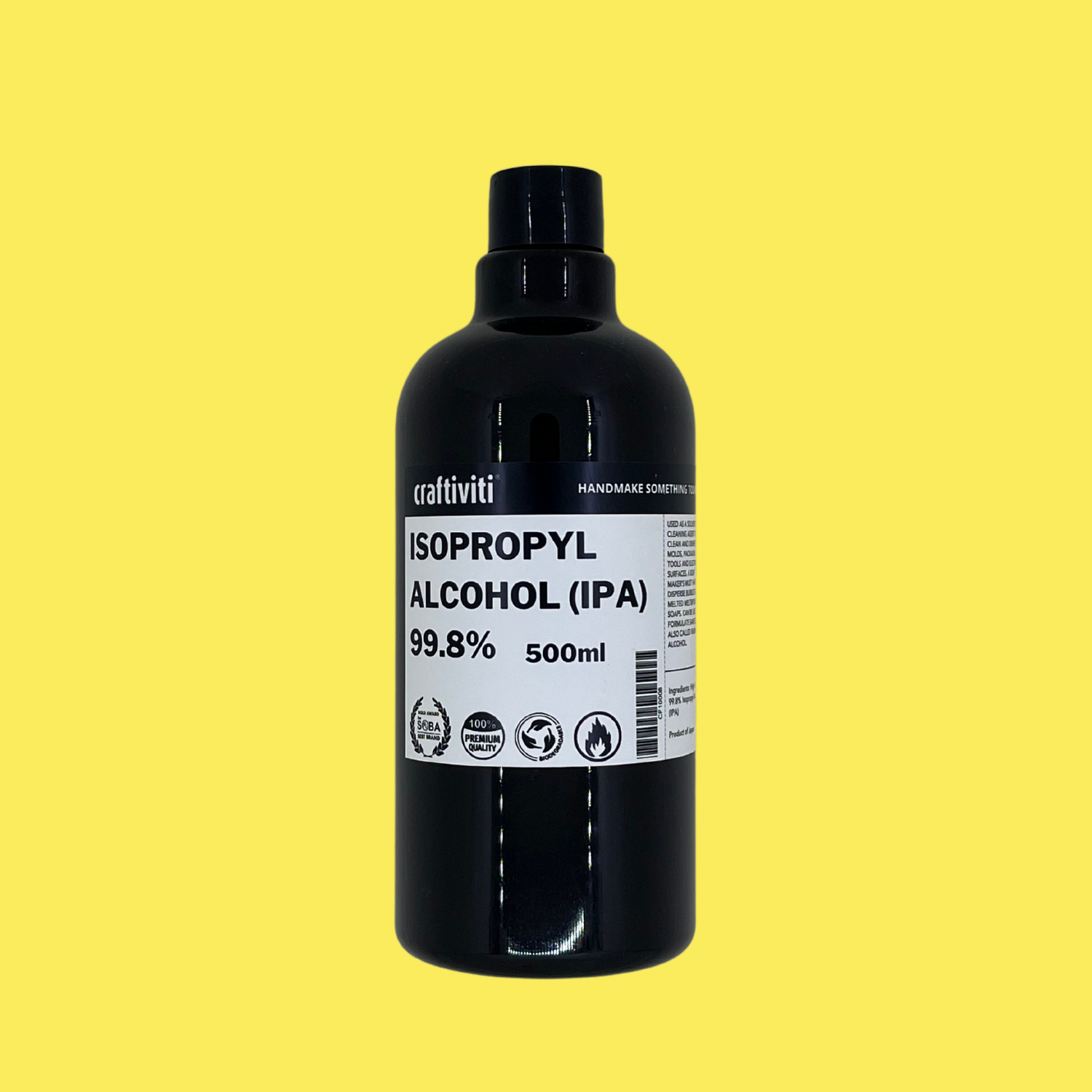 Isopropyl Alcohol (IPA) is used as a solvent or a cleaning agent. Craftiviti's Isopropyl Alcohol is at 99.8% concentration which means that it has less moisture in it, thus it will evaporate quickly.