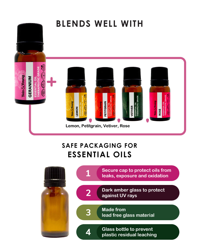 Geranium Essential Oil from Yein & Young offers a wide range of potent therapeutic and cosmetic properties: