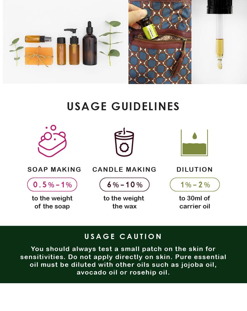 - Candle Formulation: Use up to 3–7% essential oil load based on total wax weight for optimal fragrance intensity without affecting burn performance.
