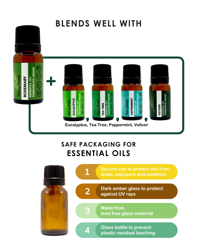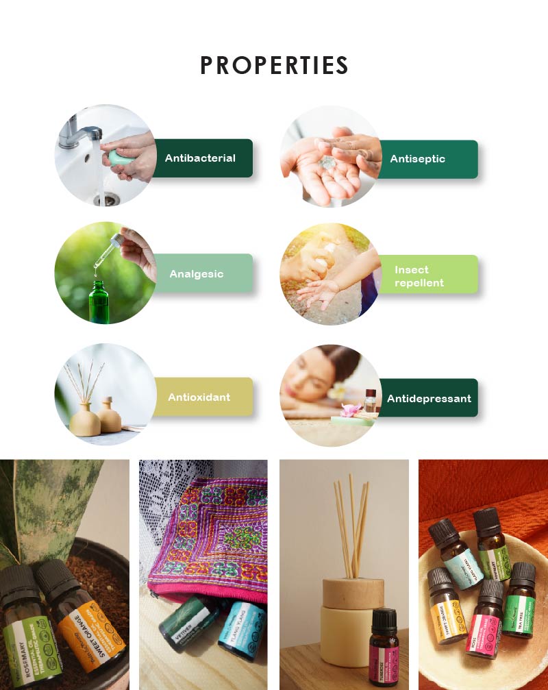 - Campurkan minyak pati (Essential Oil) sebanyak 10 hingga 20 titis ke dalam 30ml minyak pembawa sebelum digunakan.